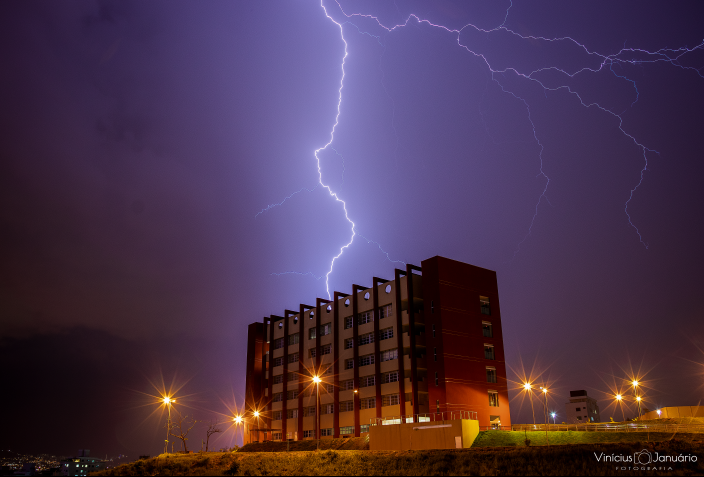 Algumas pessoas ainda preferem fazer registros fotográficos desses raios durante as chuvas, como ocorreu durante uma forte chuva na região de Contagem no domingo, 10 de Março de 2019. O fotógrafo Vinicius Januário aproveitou o prédio do CEFET Campus Contagem para complementar a sua composição e foi agraciado com um enorme raio caindo bem na direção.